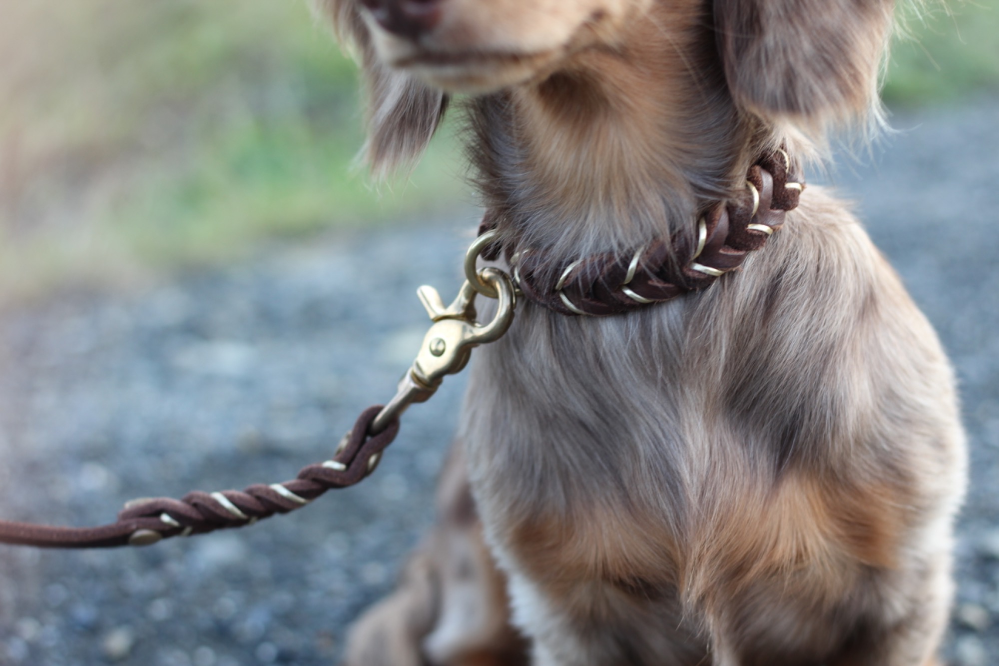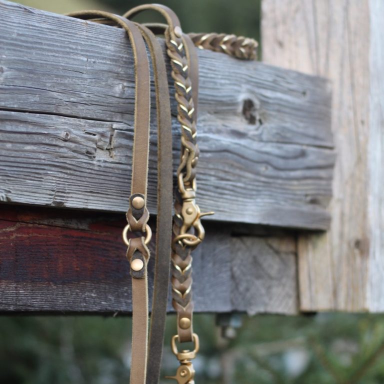 Die Ledà Hundeleine wird aus Fettleder Riemen geflochten und kann in der Breite individuell ausgewählt werden.